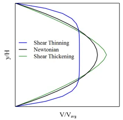 如果流體的黏度隨著剪切速率的增加而增加,則流體發生剪切增稠(見圖 2)。剪切增稠流體的一個常見例子是玉米澱粉和水的混合物。你可能在電視或互聯網上看到過這樣的例子,人們可以在這種解決方案上運行,但如果他們站著不動,他們就會沉沒。如果黏度隨著剪切速率的增加而降低,則流體會發生剪切稀化。剪切稀化流體,也稱為假塑料,在工業和生物過程中無處不在。常見的例子包括番茄醬、油漆和血液。