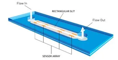 當測試液體流過其矩形狹縫微流體通道時, VROC ® 池通過測量壓降來讀取黏度。基於Hagen–Poiseuille流,它是流變原理的著名應用(K. Walters,Rheometry,Chapman and Hall,London,1975),被列入美國藥典<914> 章。