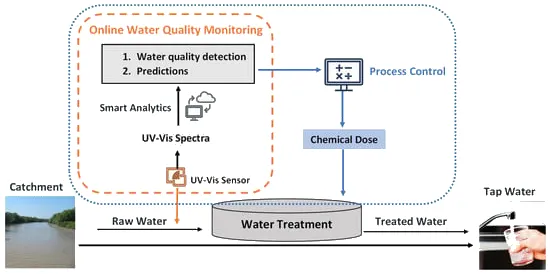 水質在目前的產業,如:製藥廠、疫苗廠、食品廠等,都非常重要。而水質監測是供水公司管理飲用水供應的水質管理的重要組成部分。飲用水質量是自來水公司的一項關鍵績效指標,對公眾健康也很重要。自來水公司開發了水質管理系統來管理從集水區到自來水的供水,涵蓋水源、水處理和飲用水安全供應的分配系統。需要進行水質監測,以確保向消費者供應的水符合標準。水質測量包含:紫外-可見儀器、顏色、溶解有機碳 (DOC)、總有機碳 (TOC)、濁度和硝酸鹽。傳統上,飲用水處理的水質監測依賴於定期採樣程序(收集和運輸,然後進行實驗室分析),通常只能捕獲一段時間內的小快照,可能無法代表水質的真實變化。它還經常受到反饋延遲的影響,無法對水事故做出快速反應,因為使用標準實驗室方法進行水分析通常需要較長的處理時間,例如樣品預處理或添加試劑。傳統的監測方法也有更高的風險可能會錯過可能對水質和處理過程管理產生負面影響的水事件。相比之下,在線監測連續測量水質,允許隨時水質測量和過程控制。總之,在線水質監測可以通過實時評估源水和處理過的水質、識別污染物和控制處理過程來改進處理過程。當需要快速響應以優化過程時,以確保供水符合飲用水標準。