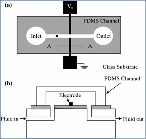 電容計數器使用與庫爾特計數器類似的原理:當微米或亞微米粒子通過孔徑時,它測量的是交流電容而不是直流電阻。電容計數器對於檢測低電導液體中的顆粒特別有用,因為在導電性差的液體中難以測量由於顆粒通過而引起的電阻變化。過去,電容測量通常用於識別散裝材料和研究生物細胞的集合。然而,Sohn 等人採用這種技術來檢測和量化單個真核細胞核中 DNA的極化反應。他們構建了一個微流體裝置(圖),並使用注射泵將液體輸送到該裝置。在設備上使用頻率為1 kHz的電容橋來檢測電容變化以確定單個真核細胞的DNA含量。最近,Murali等人採用電容計數器實時監測潤滑油中的磨屑,避免機器發生災難性系統故障。與批量測量方法不同,它們可以掃描每個單獨的顆粒並確定顆粒的大小,而不受油品性質變化的影響。